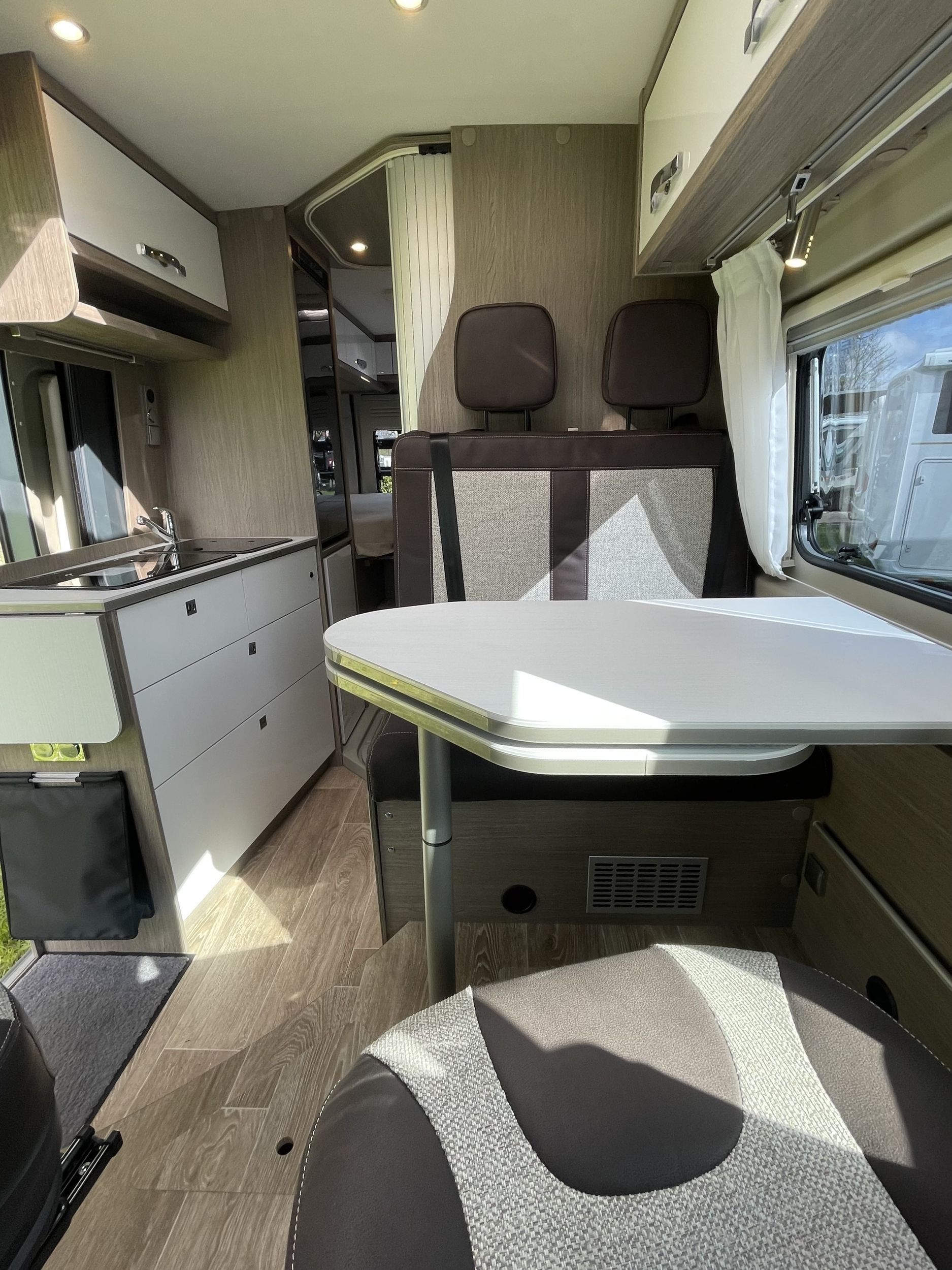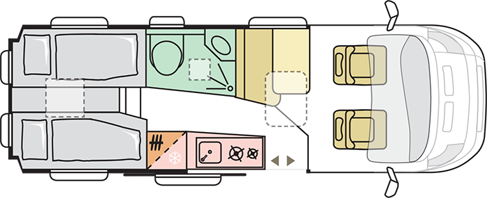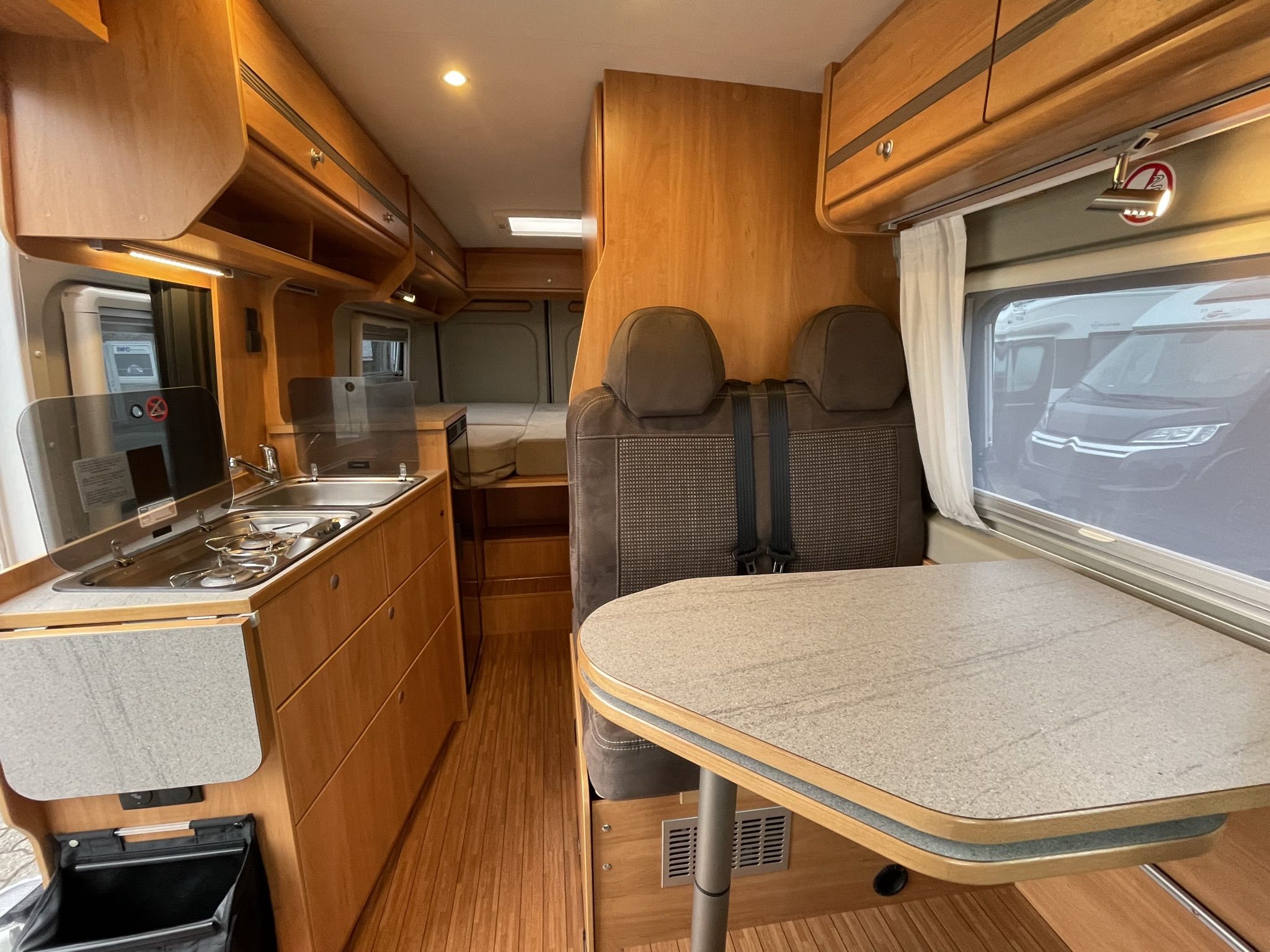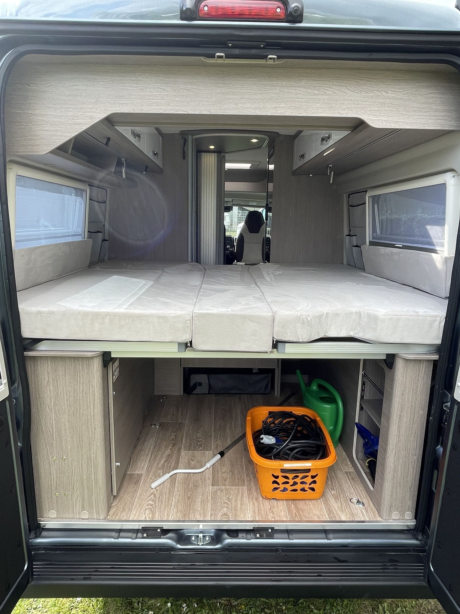 ferskvandstank, spildevandstank, varme, varmt vand, kemitoilet, bruser, køkken med gasblus, vaskekumme, køleskab (12v, 220v, og gas), 12v indvendig belysning, radio, gasflaske, strømkabel, adapter, vandslange, forbindingskasse, sikkerhedsvester, advarselstrekant og klimaanlæg og et bordatlas.