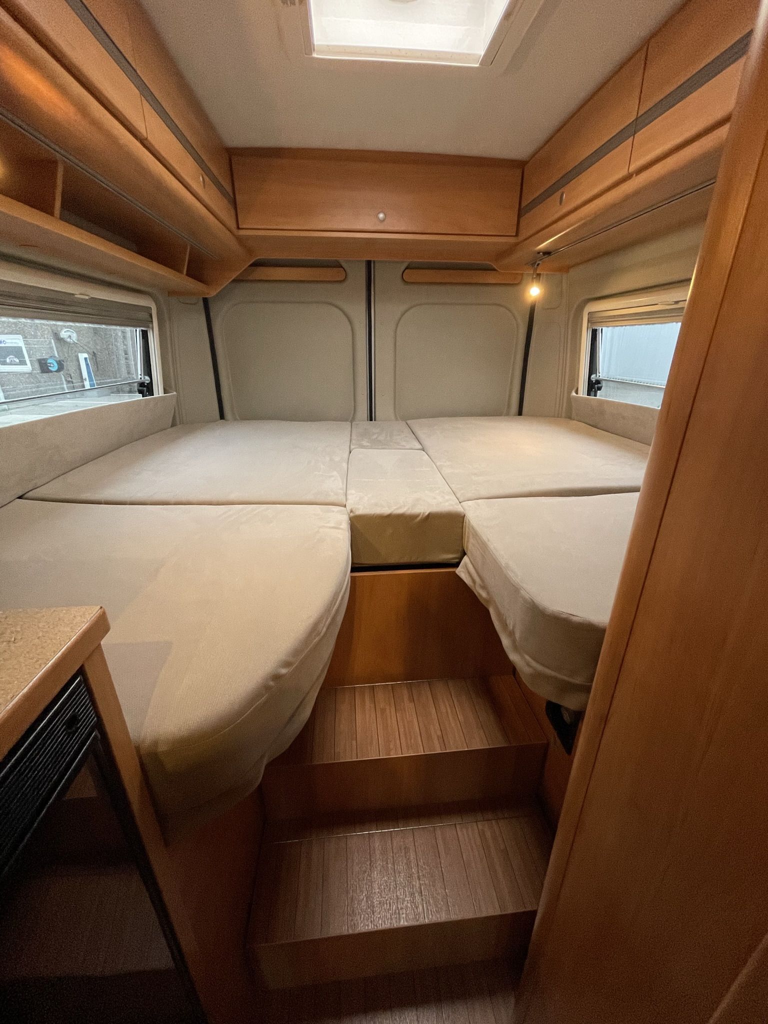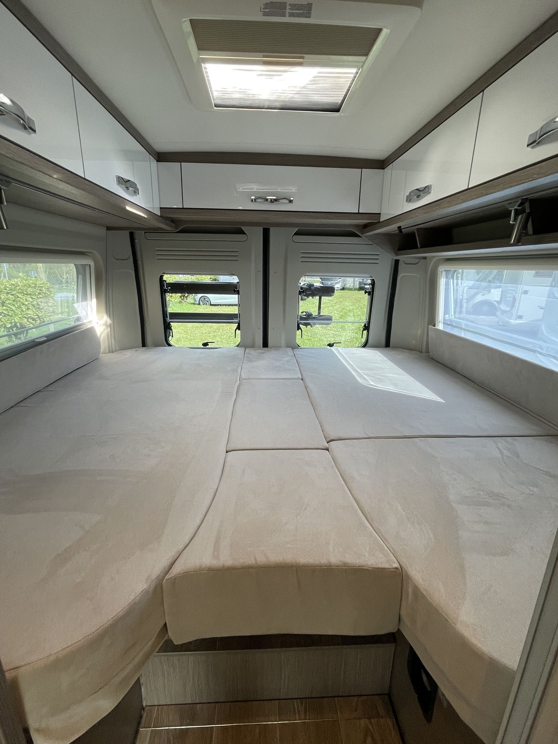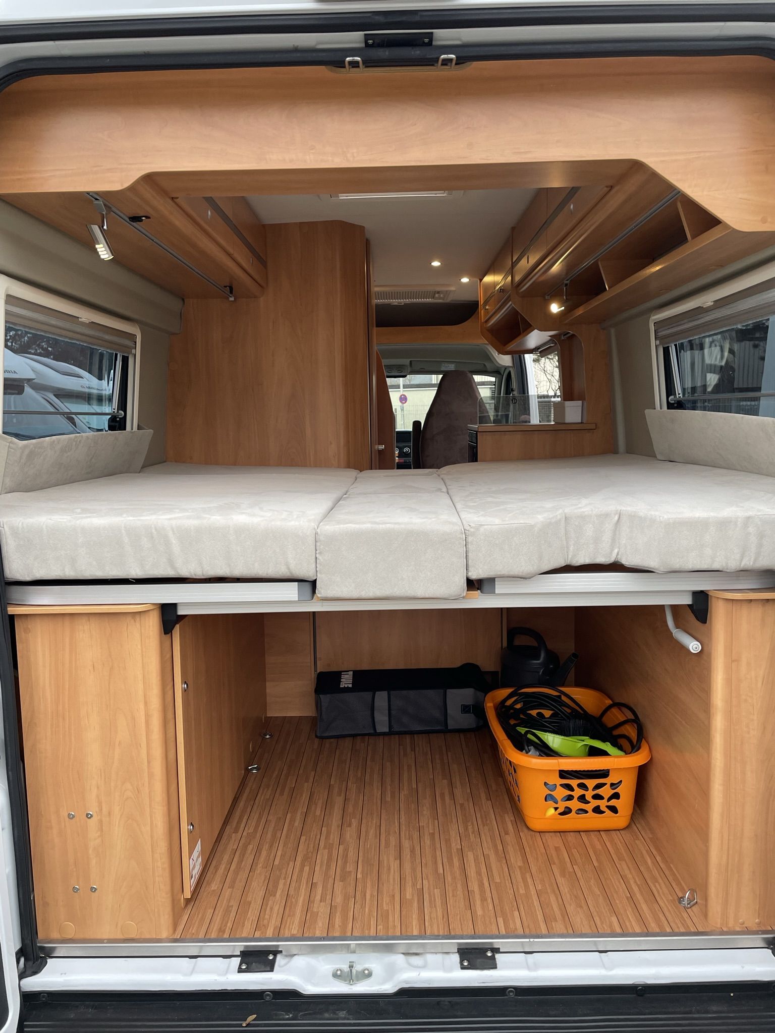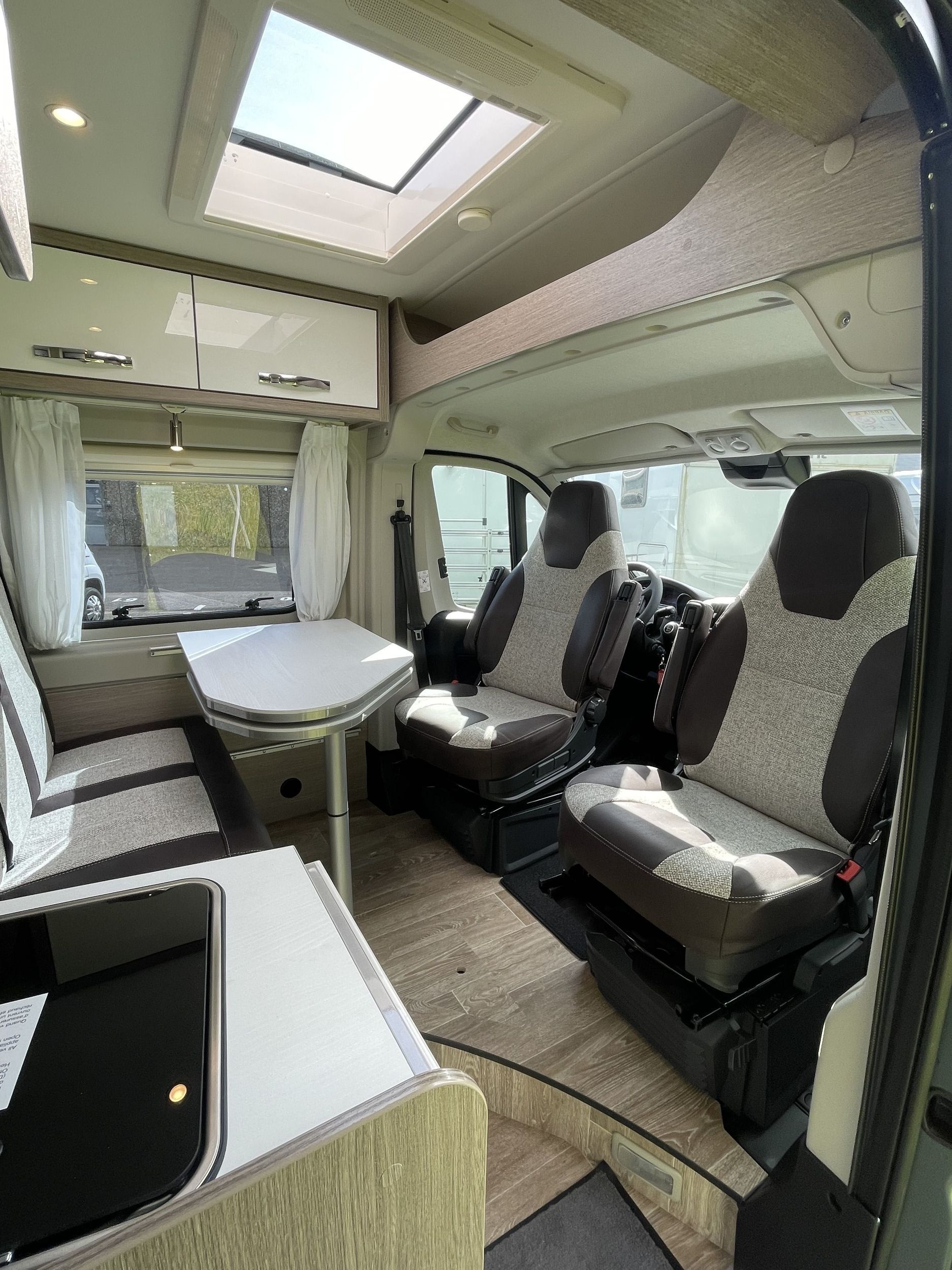 ferskvandstank, spildevandstank, varme, varmt vand, kemitoilet, bruser, køkken med gasblus, vaskekumme, køleskab (12v, 220v, og gas), 12v indvendig belysning, radio, gasflaske, strømkabel, adapter, vandslange, forbindingskasse, sikkerhedsvester, advarselstrekant og klimaanlæg og et bordatlas.
