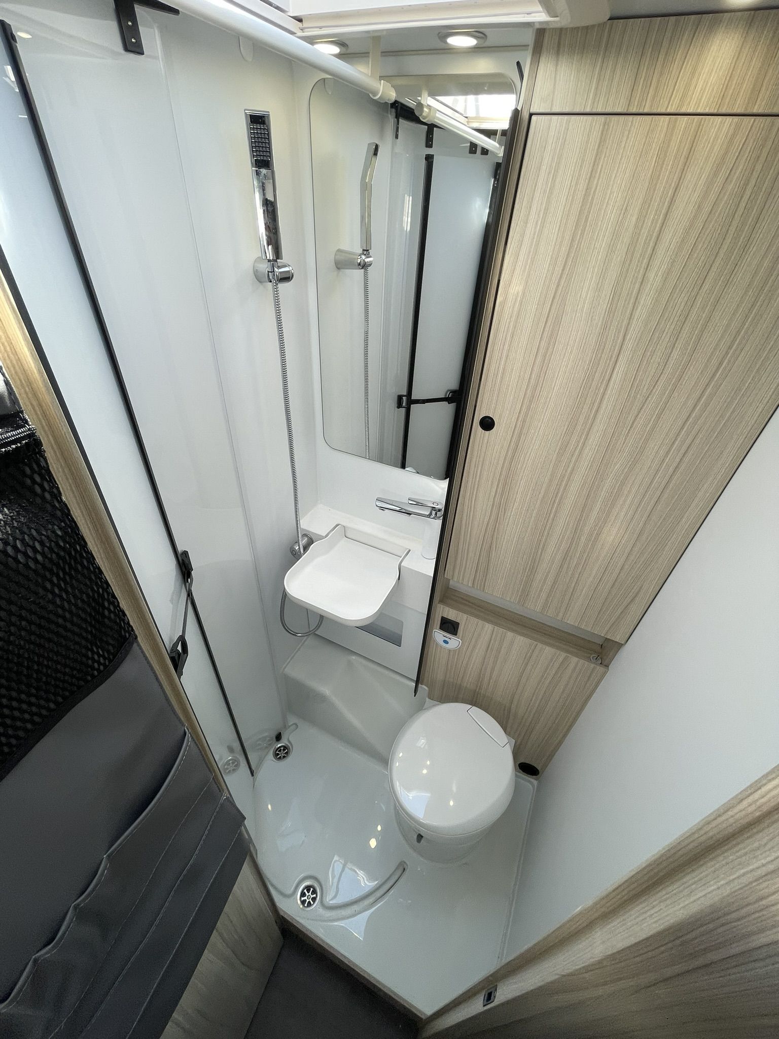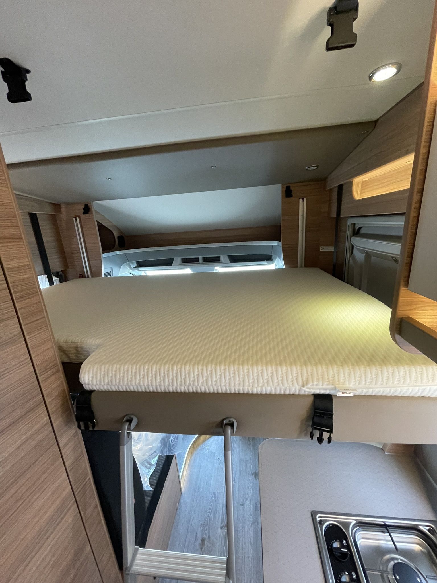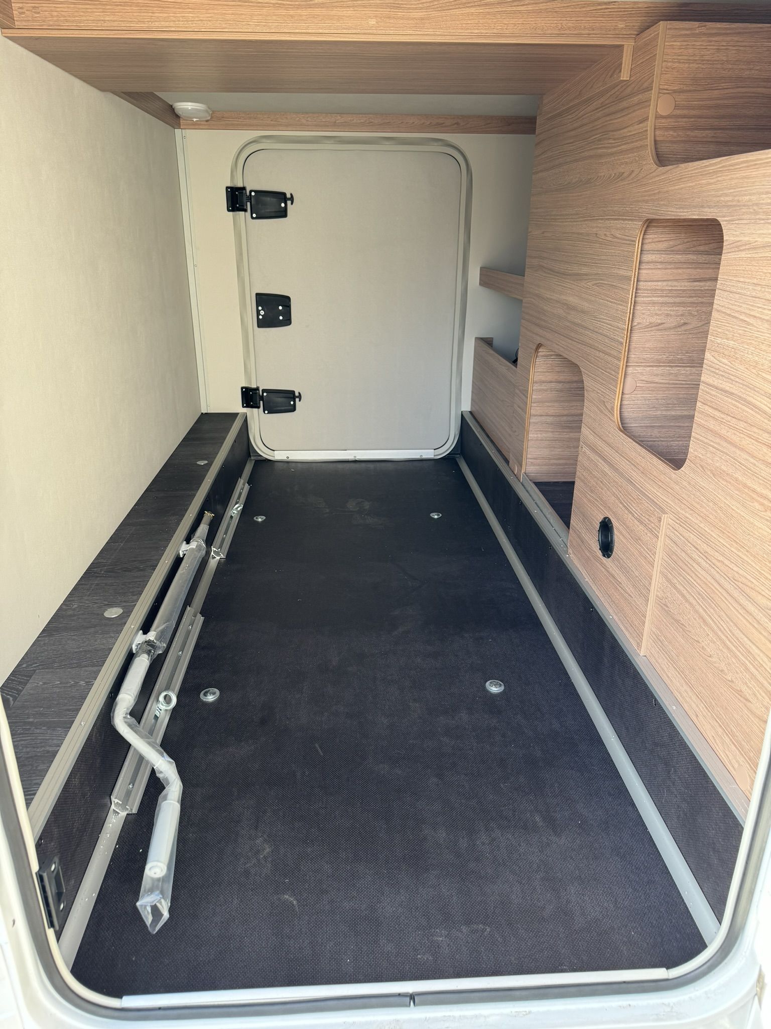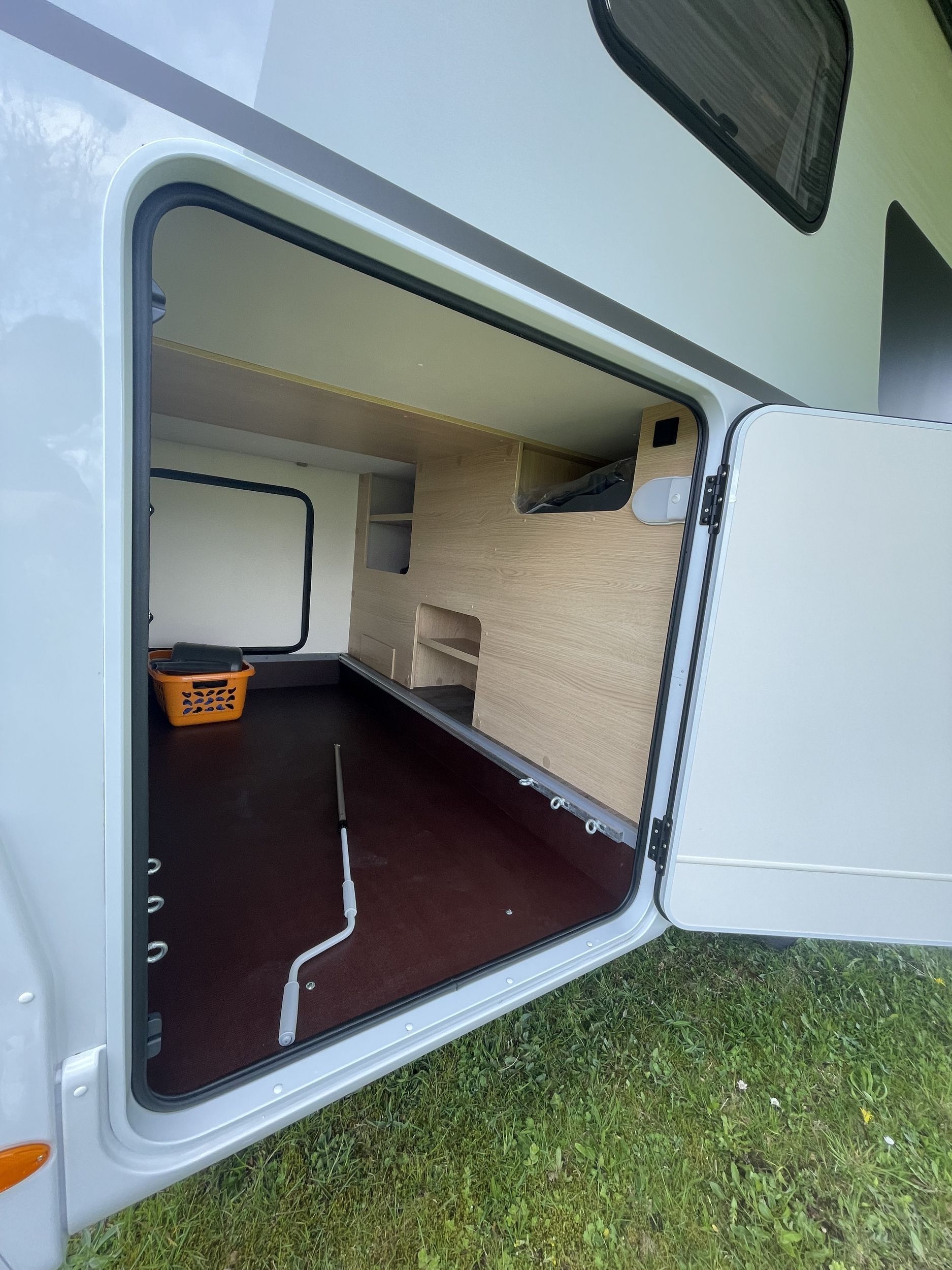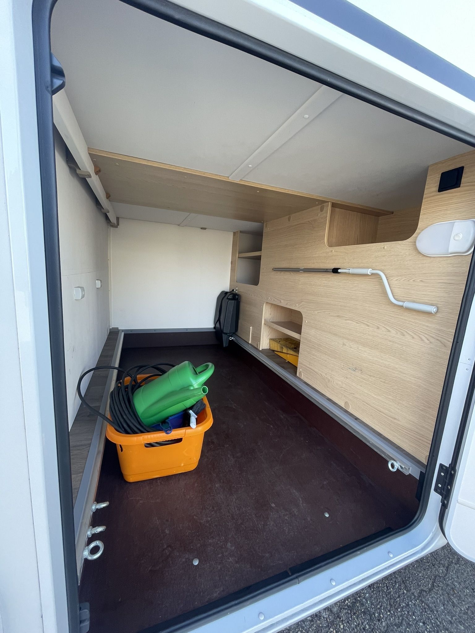ferskvandstank, spildevandstank, varme, varmt vand, kemitoilet, bruser, køkken med gasblus, vaskekumme, køleskab (12v, 220v, og gas), 12v indvendig belysning, radio, gasflaske, strømkabel, adapter, vandslange, forbindingskasse, sikkerhedsvester, advarselstrekant og klimaanlæg og et bordatlas.