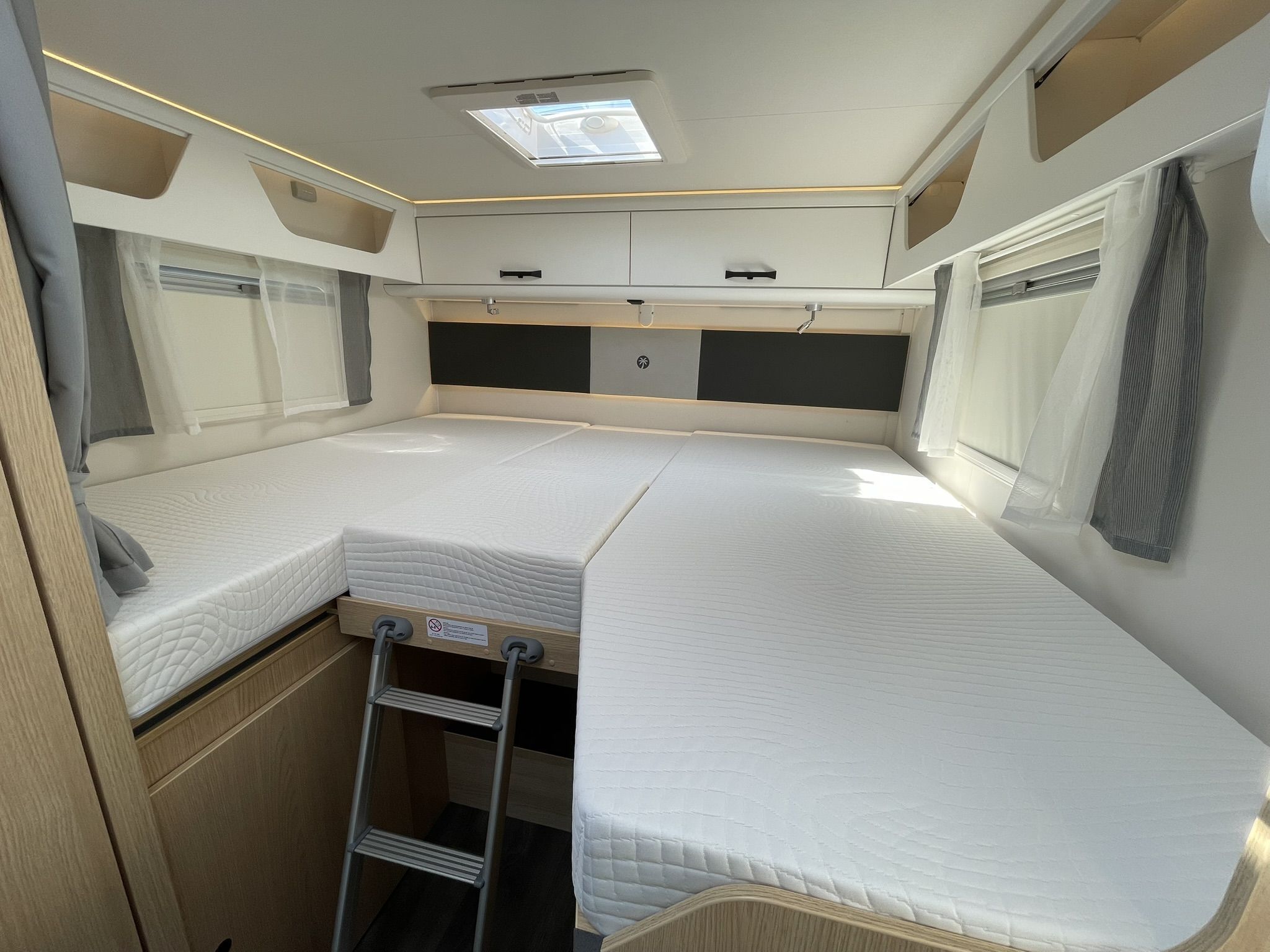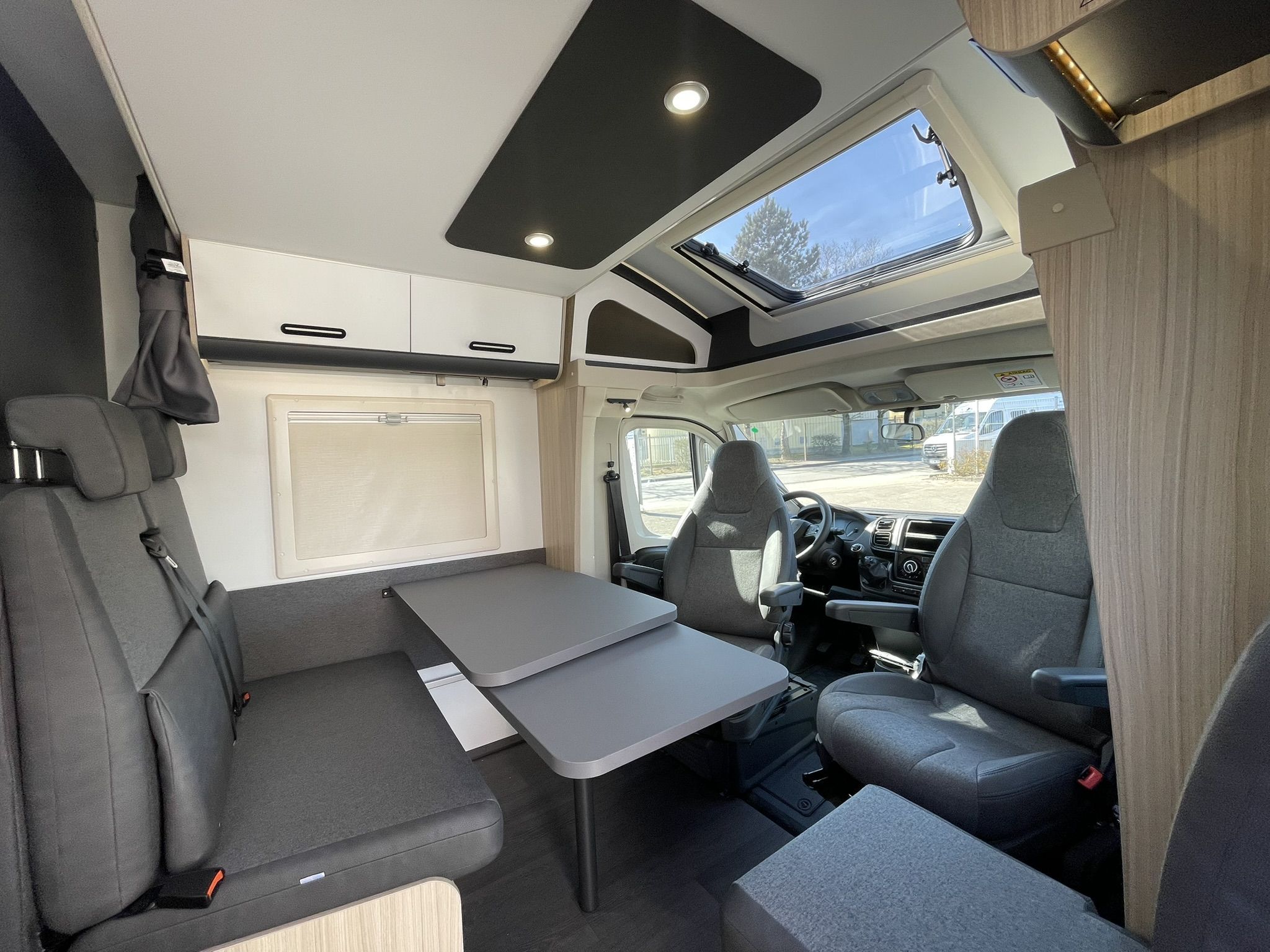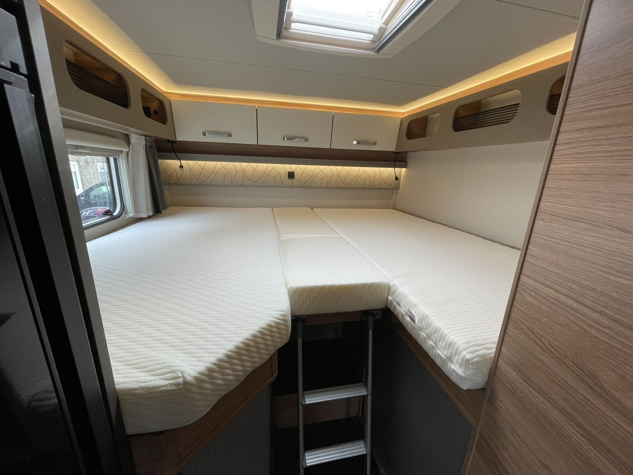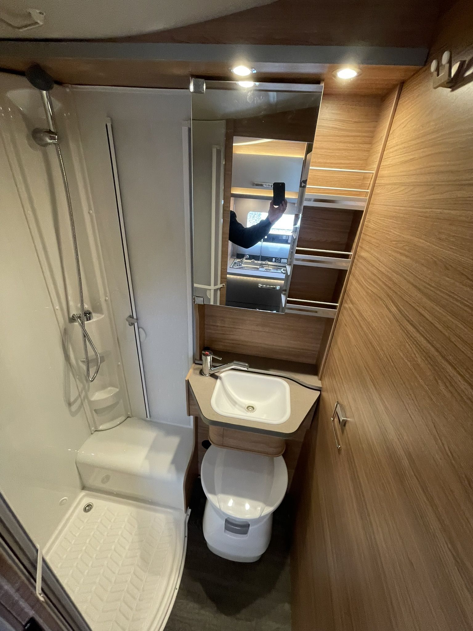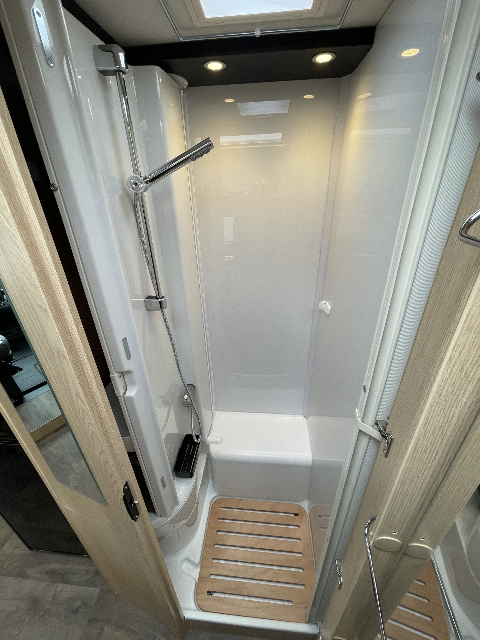 ferskvandstank, spildevandstank, varme, varmt vand, kemitoilet, bruser, køkken med gasblus, vaskekumme, køleskab (12v, 220v, og gas), 12v indvendig belysning, radio, gasflaske, strømkabel, adapter, vandslange, forbindingskasse, sikkerhedsvester, advarselstrekant og klimaanlæg og et bordatlas.