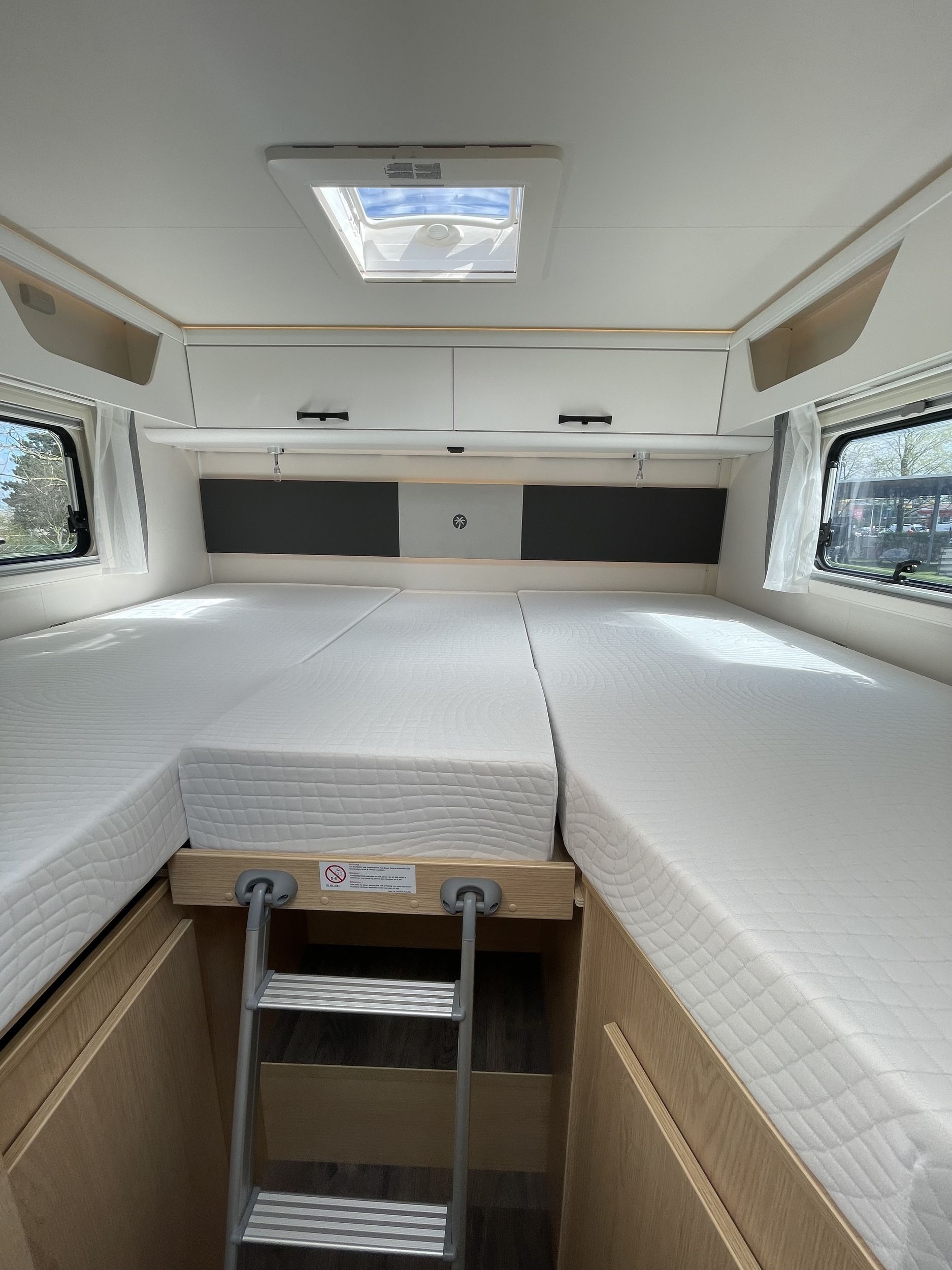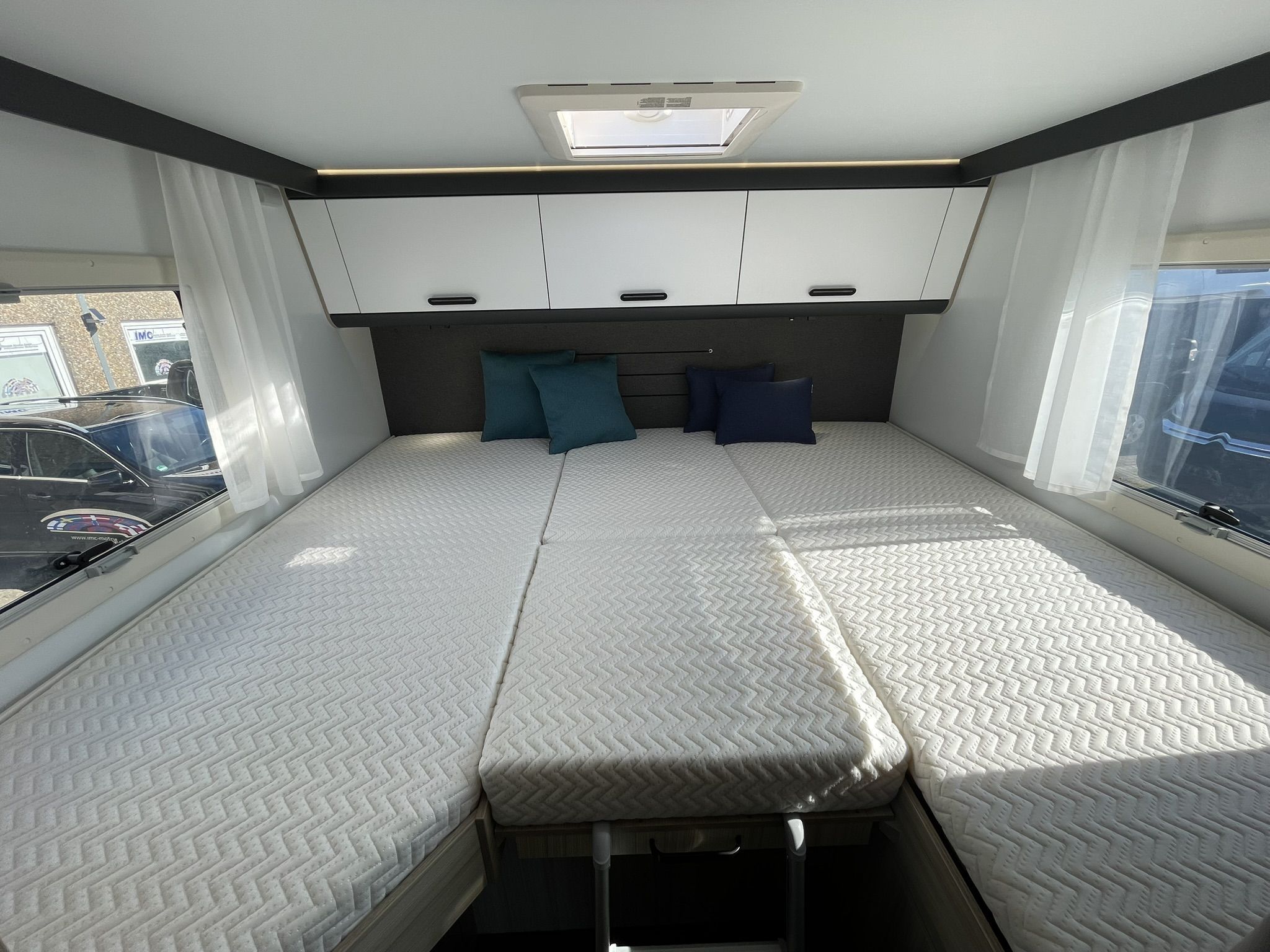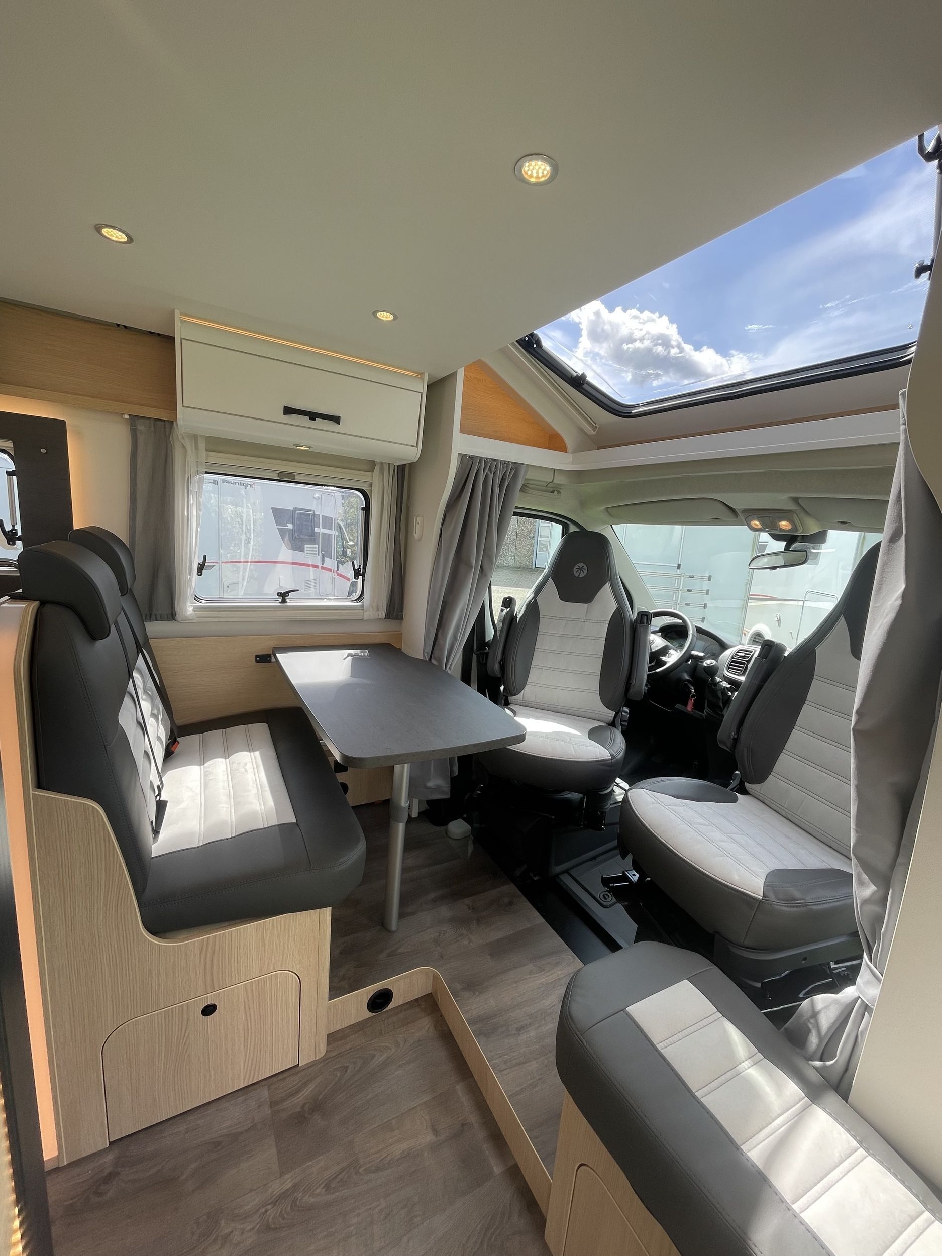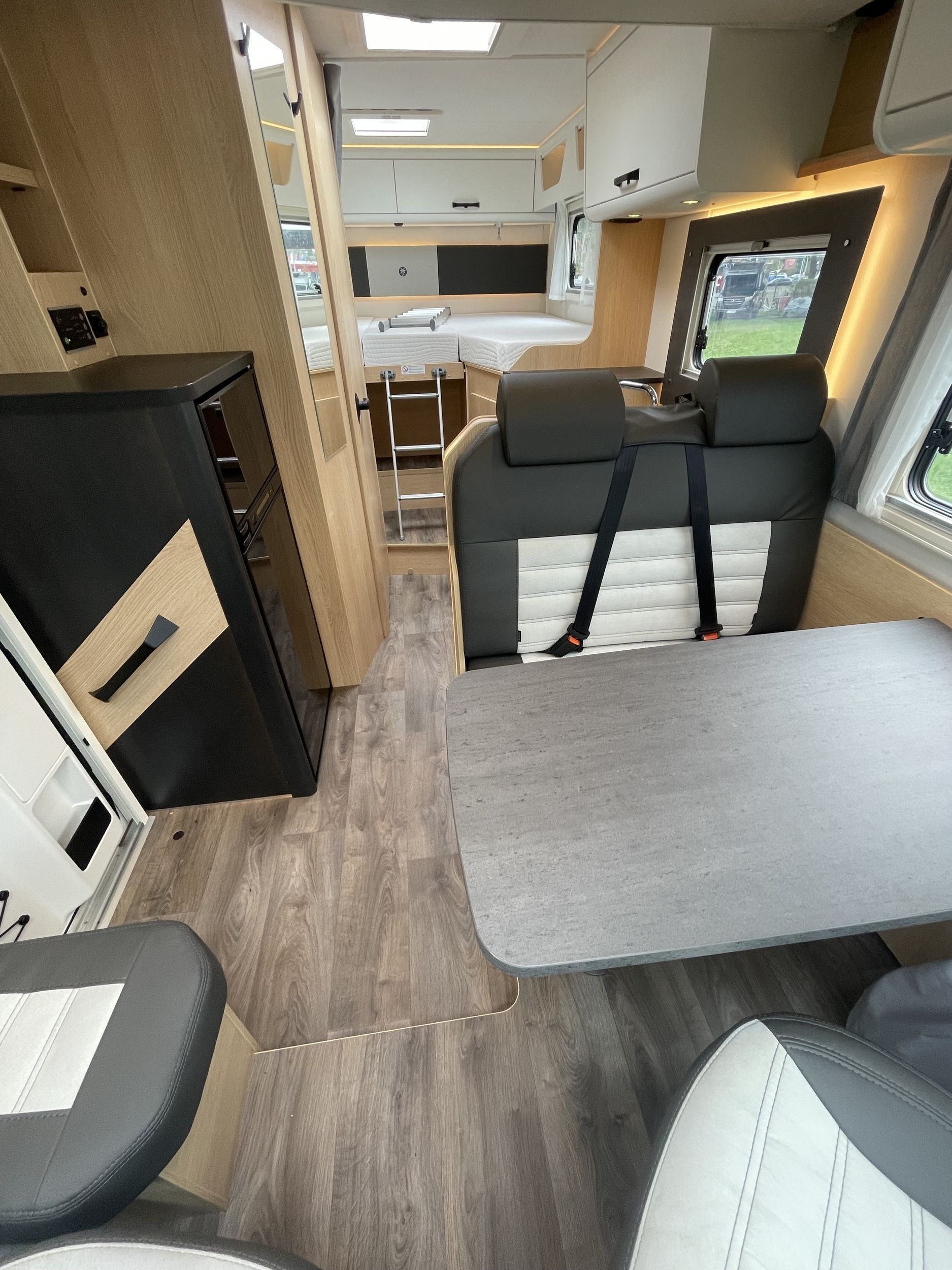 ferskvandstank, spildevandstank, varme, varmt vand, kemitoilet, bruser, køkken med gasblus, vaskekumme, køleskab (12v, 220v, og gas), 12v indvendig belysning, radio, gasflaske, strømkabel, adapter, vandslange, forbindingskasse, sikkerhedsvester, advarselstrekant og klimaanlæg og et bordatlas.
