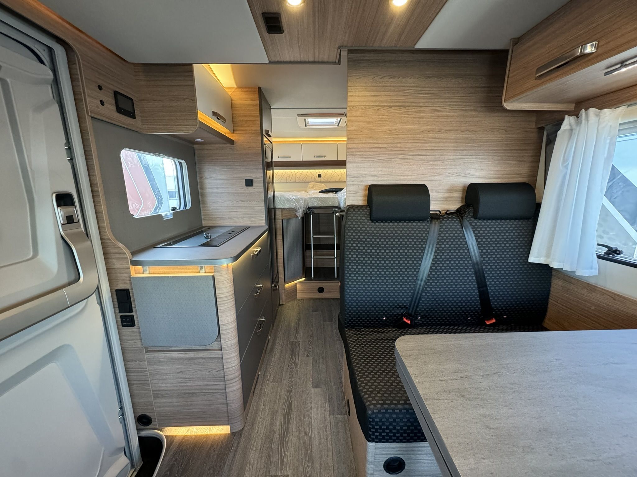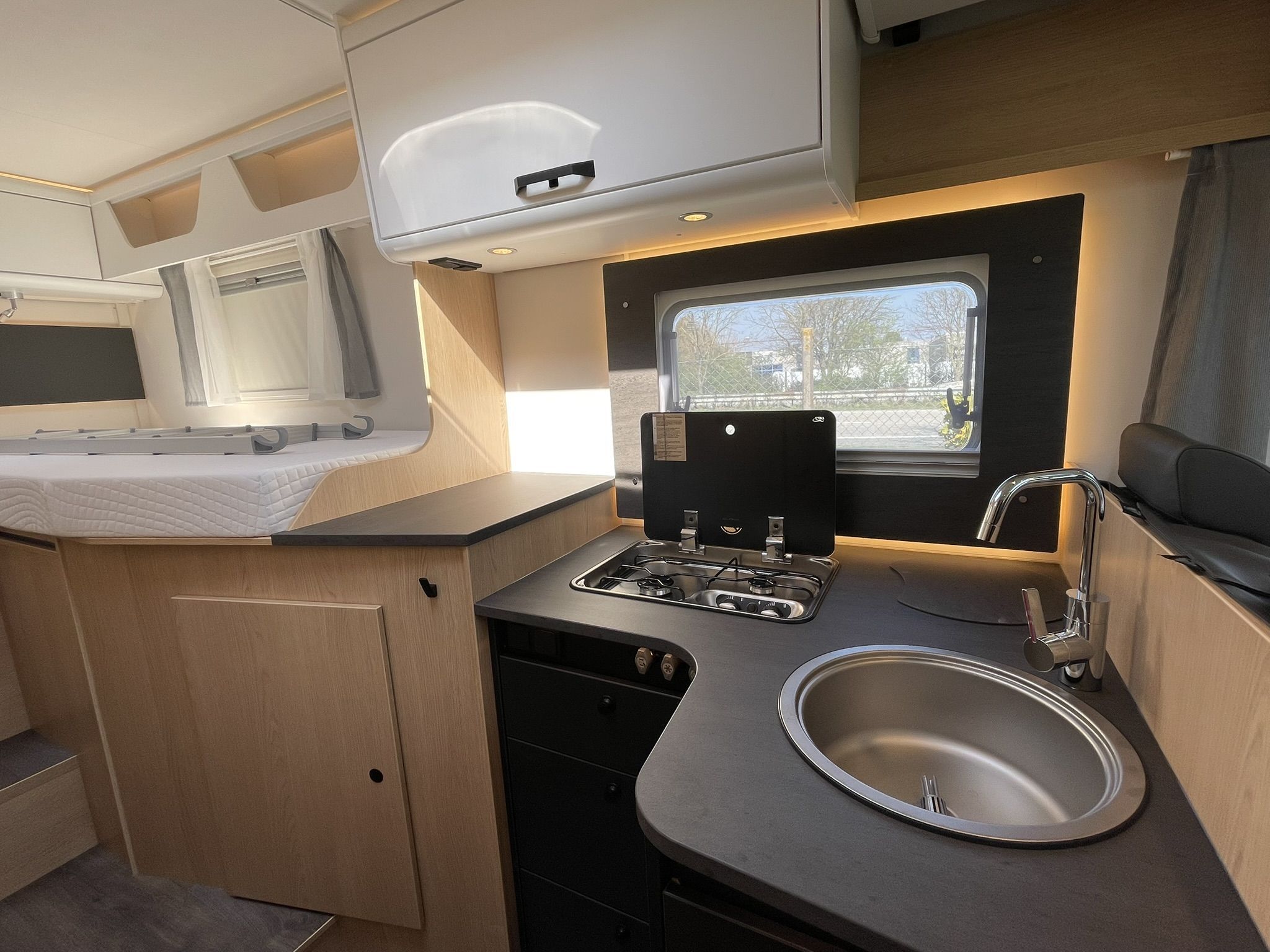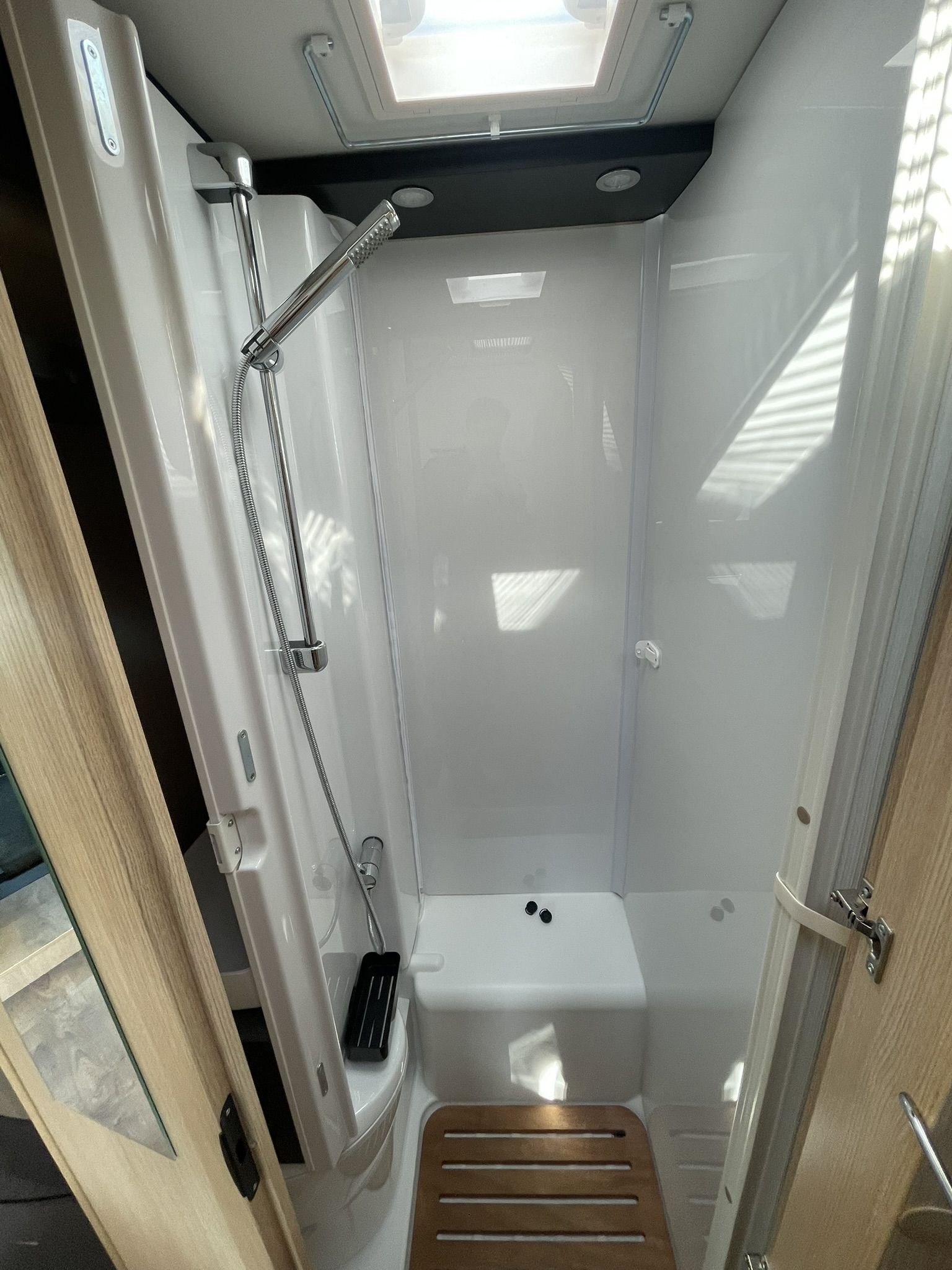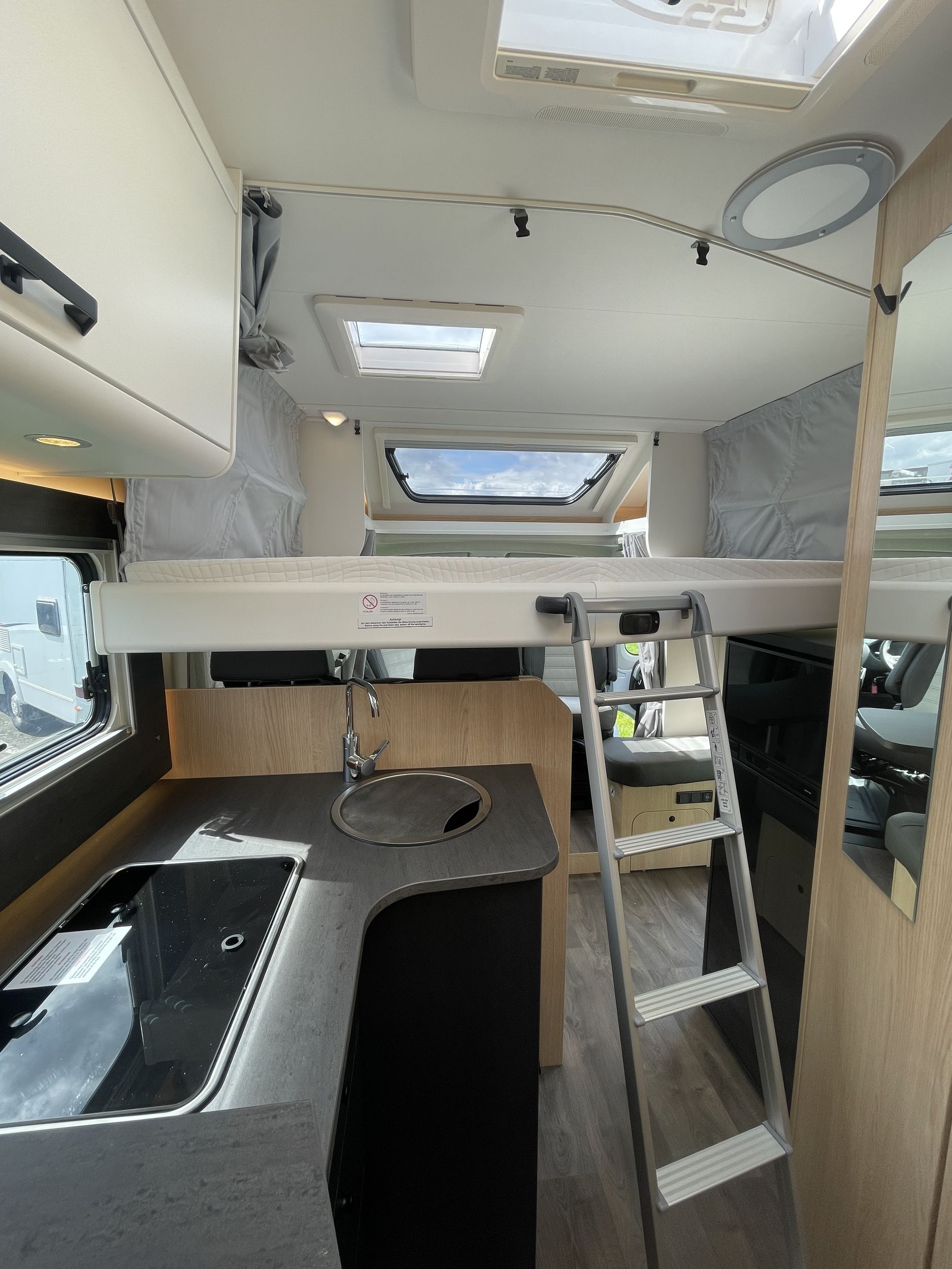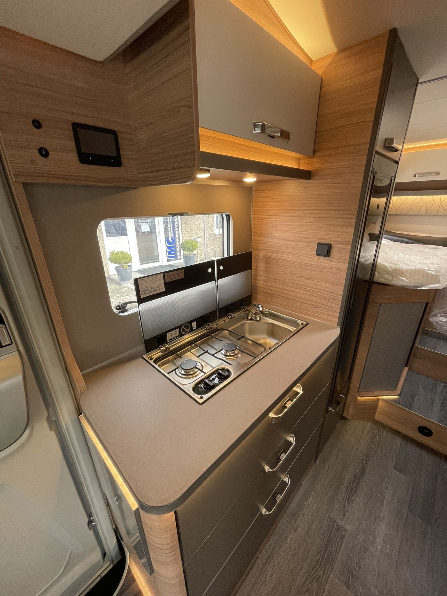 ferskvandstank, spildevandstank, varme, varmt vand, kemitoilet, bruser, køkken med gasblus, vaskekumme, køleskab (12v, 220v, og gas), 12v indvendig belysning, radio, gasflaske, strømkabel, adapter, vandslange, forbindingskasse, sikkerhedsvester, advarselstrekant og klimaanlæg og et bordatlas.