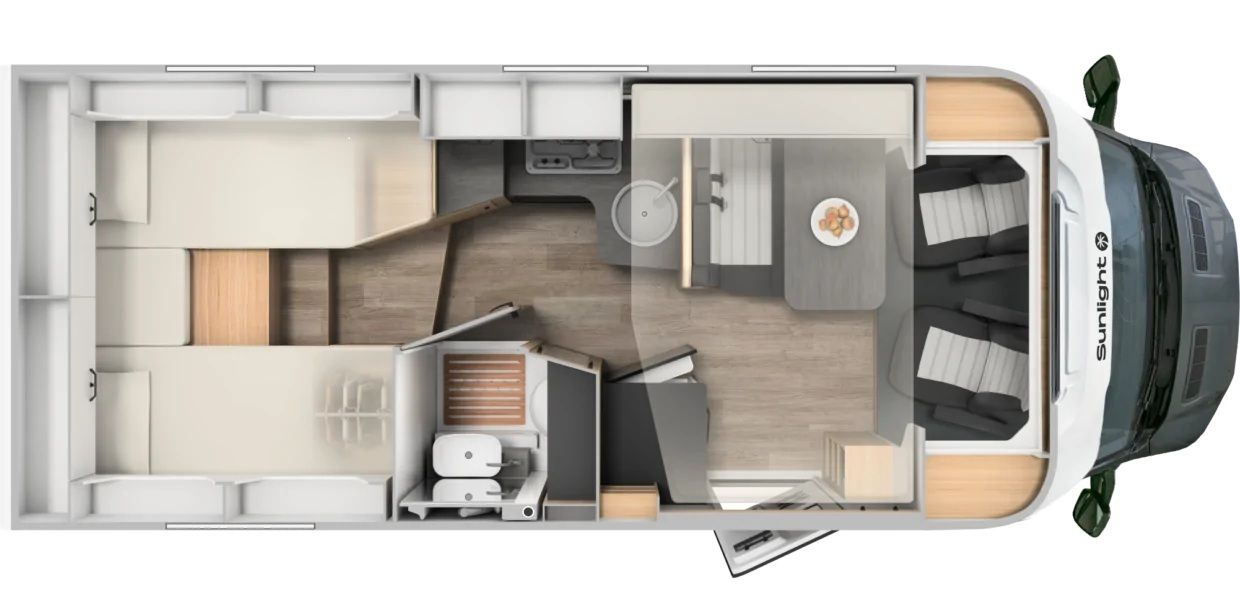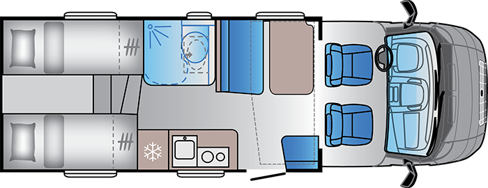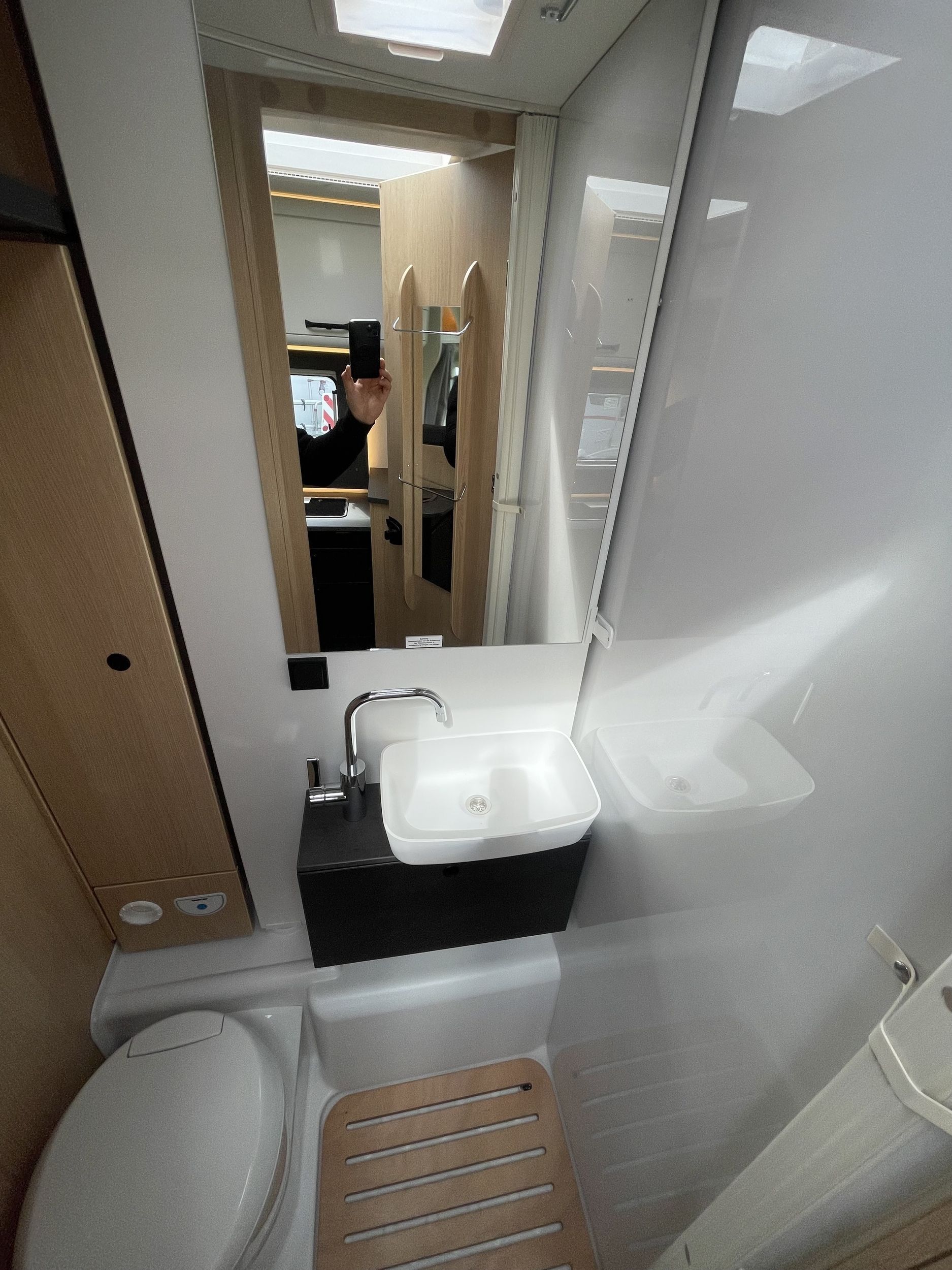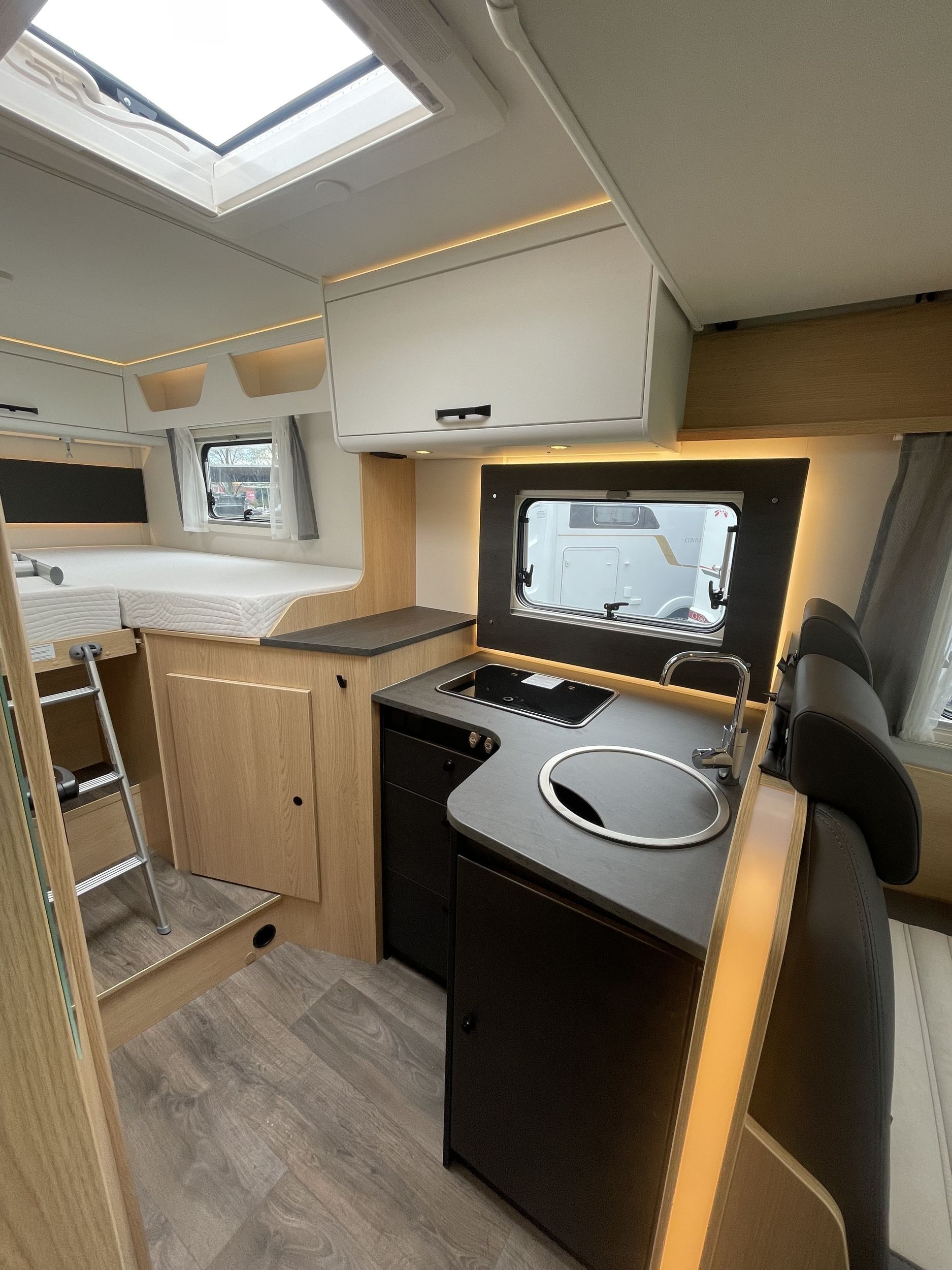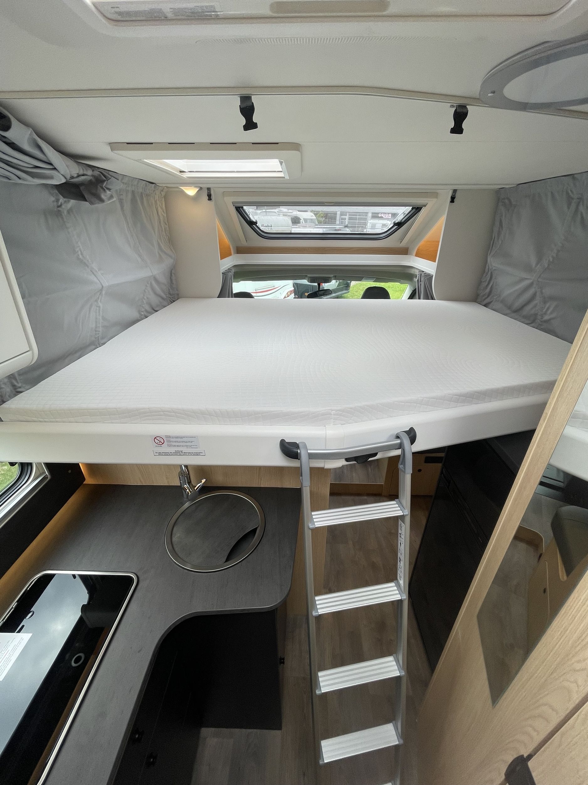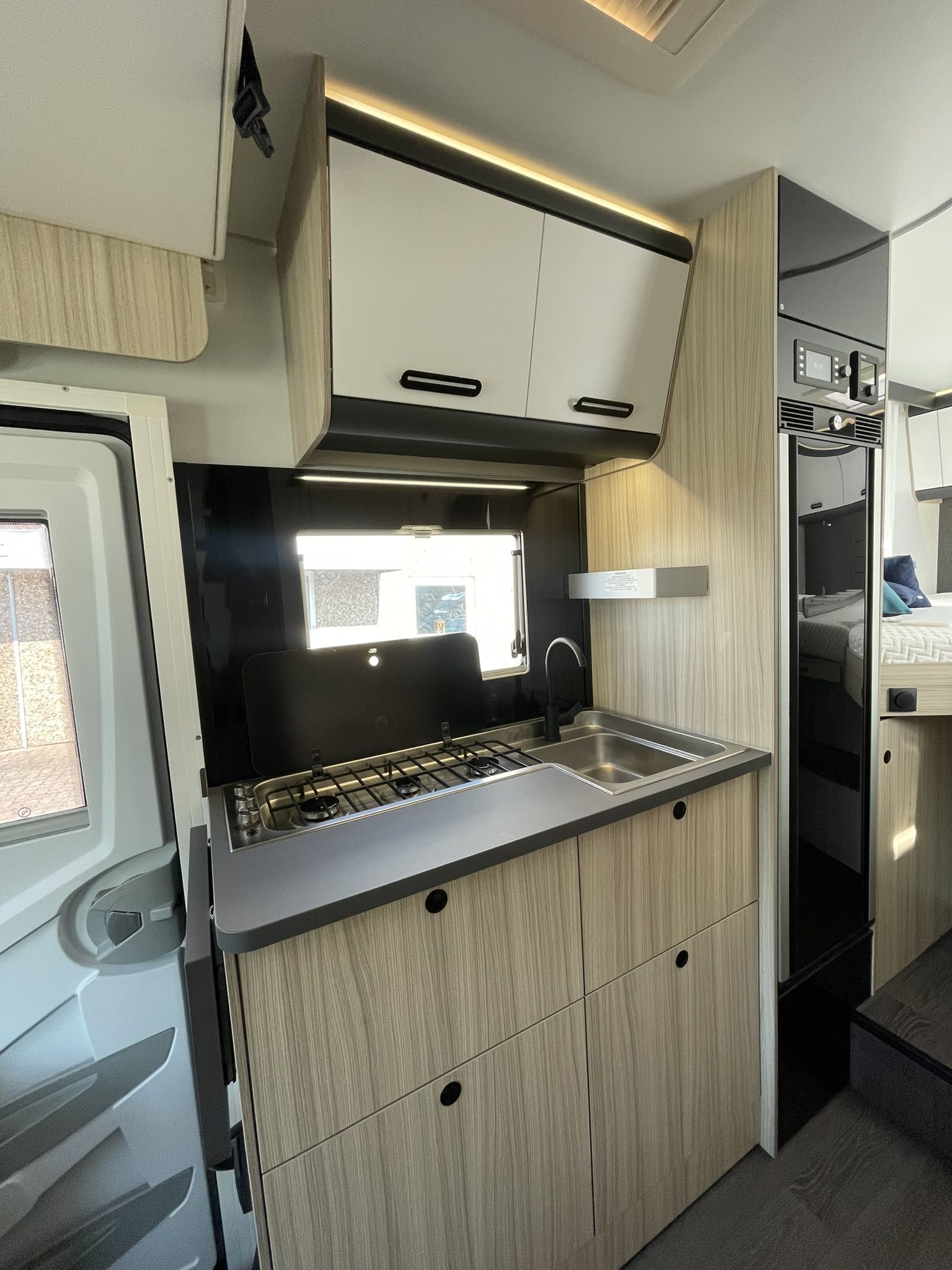 ferskvandstank, spildevandstank, varme, varmt vand, kemitoilet, bruser, køkken med gasblus, vaskekumme, køleskab (12v, 220v, og gas), 12v indvendig belysning, radio, gasflaske, strømkabel, adapter, vandslange, forbindingskasse, sikkerhedsvester, advarselstrekant og klimaanlæg og et bordatlas.
